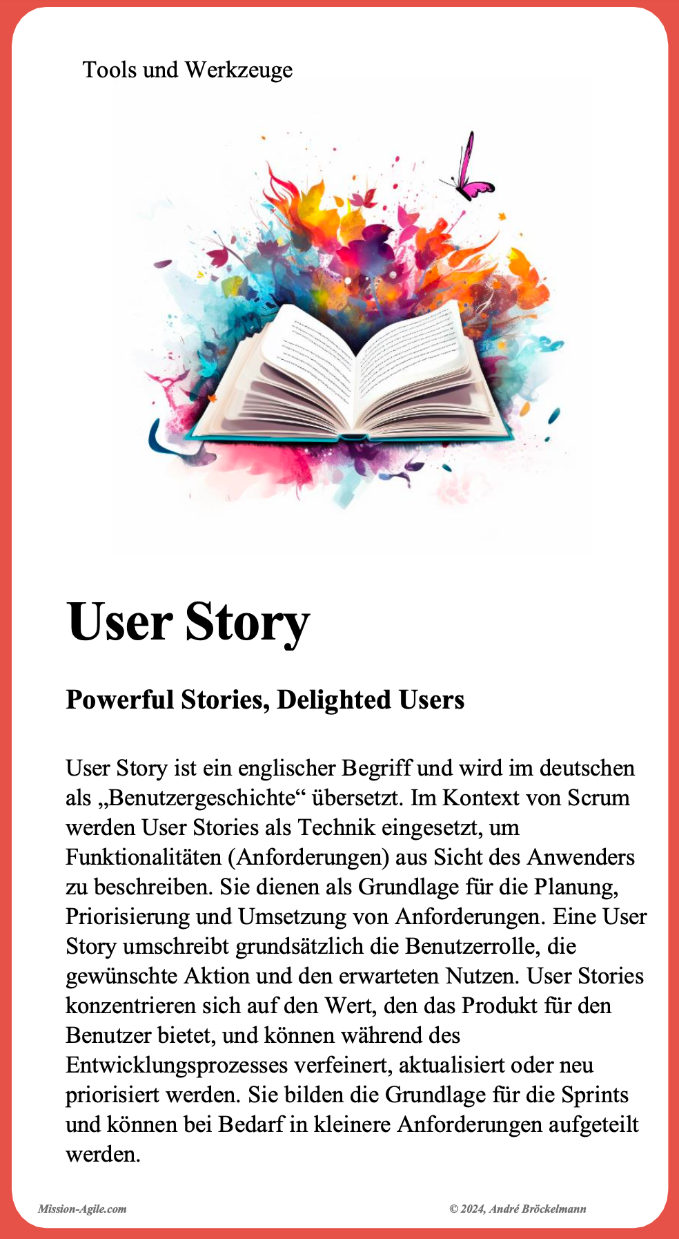 Die Karten sind einzigartig, kompakt und verschaffen Dir wertvolle Tipps und Tricks aus der Praxis. Sie geben dir nicht nur das theoretische Wissen mit, sondern geben Dir auch konkrete Praxisbeispiele. Du weißt genau, wie Du Deine Meetings und Workshops aufsetzt und wer welche Aufgaben hat.